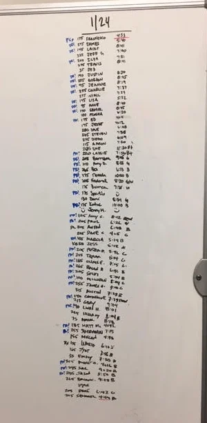 Fantastic work everyone! It was great to watch the back squat and strict press numbers reach all-time highs during the second half of last year, and these impressive front squat numbers just keep the momentum going. We're looking forward to big things with snatches and cleans (and jerks) as the year progresses, and applying all this strength to other movements and modalities.