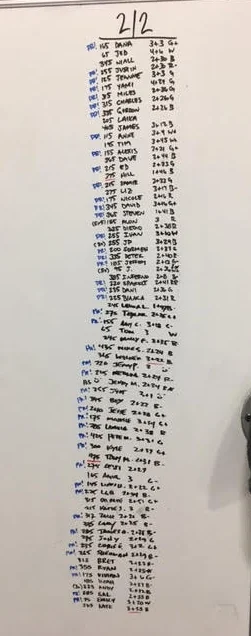 Following the prior week's insane number of front squat PRs, last week saw an even higher number of deadlift 1-rep max PRs - I think we counted nearly four dozen lifetime bests! It's always an exciting day in the gym when heavy deadlift singles and/or 1RMs are on the board, as it's usually the biggest lift in the repertoire for nearly every athlete... and something about standing up a bunch of heavy weights just feels AWESOME.