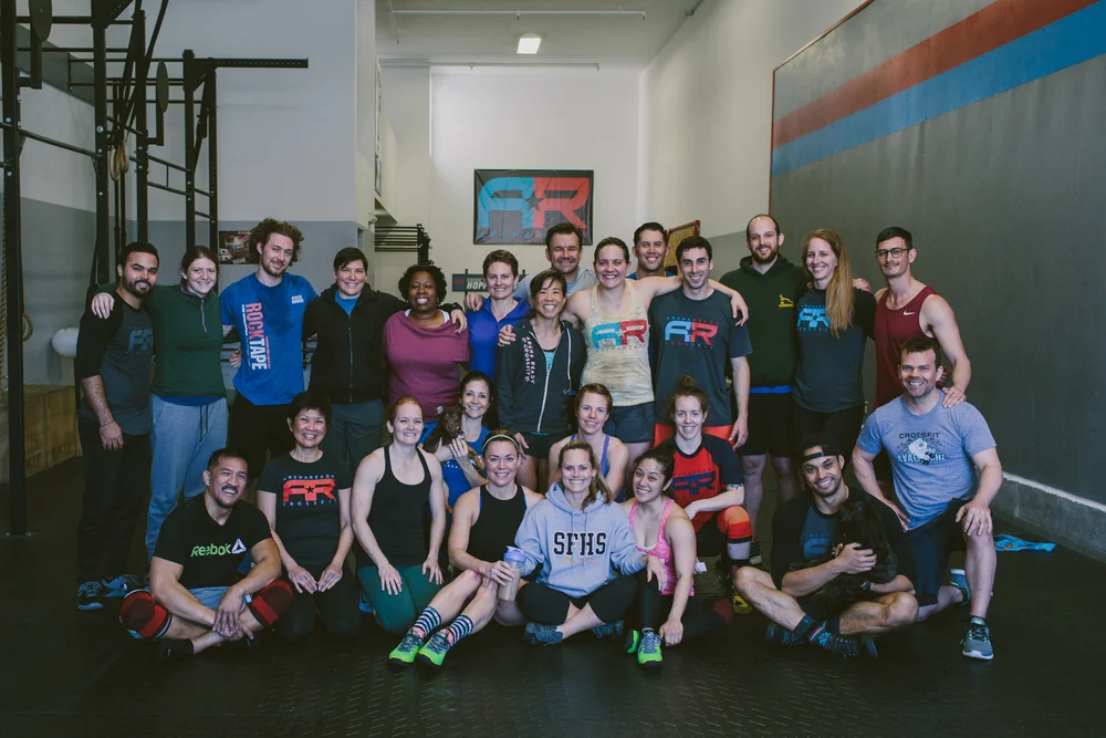 Since it's Open season, the deadlifts and HSPUs in Wednesday's WOD remind me of that time in 2016 when we saw 55 reps of each in "Open Workout 16.4." Thankfully some of us got it together enough afterwards to take this happy photo under Jenny's careful direction...
